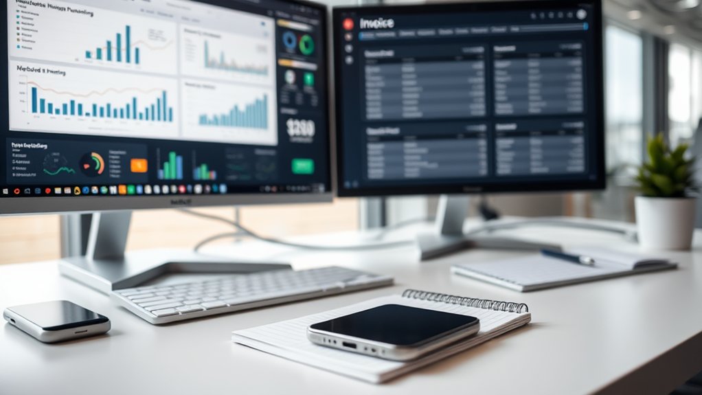 Compatibility between systems is essential for a smooth integration process, as mismatched data formats and protocols can create significant challenges. You may encounter compatibility issues if your chosen accounting software options don't support specific banking APIs or invoicing tools. To mitigate these challenges, consider leveraging integration tools like APIs or third-party services. Thorough testing before full implementation is vital for identifying potential discrepancies in data synchronization.