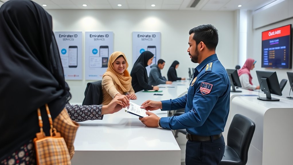 Completing your visa application is just one part of living in the UAE; obtaining an Emirates ID is another vital step. Amer Centers provide essential assistance with Emirates ID registration, guaranteeing you comply with local laws smoothly. Their trained staff guide you through the immigration application procedures, making the process efficient and straightforward. Here's how they help: