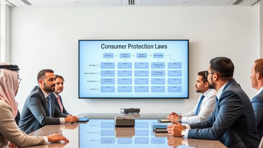 Understanding and complying with consumer protection laws is vital for e-commerce businesses operating in the UAE. Under Federal Law No. 15/2020, you must guarantee clear and accurate advertising practices to avoid misleading claims. This means providing understandable information about pricing and product characteristics in specified languages. Furthermore, your return policies must be transparent and communicated clearly to consumers before purchase, which is essential for compliance. Avoid deceptive practices in your advertisements; any promotional content must accurately represent the goods or services offered. Additionally, compliance entails offering warranties and after-sales services, making certain consumers are fully informed of their rights. By adhering to these regulations, you build consumer trust and mitigate potential legal repercussions in the competitive e-commerce landscape.