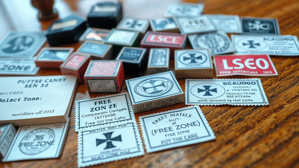 Investing in customized stamps not only enhances your brand identity but also plays a vital role in boosting efficiency within free zone companies. These personalized stamps streamline operations by enabling you to quickly apply essential company information, thereby saving precious time on repetitive tasks. Additionally, customized stamps guarantee documentation consistency, which is fundamental for maintaining operational efficiency and smooth workflows. Utilizing self-inking stamps eliminates the need for separate ink pads, further optimizing administrative efficiency. This integration not only enhances your company's professional image but also contributes to security enhancement, markedly reducing the risk of forgery. By prioritizing customized stamps, you effectively promote both operational effectiveness and a solid brand identity within your business environment.