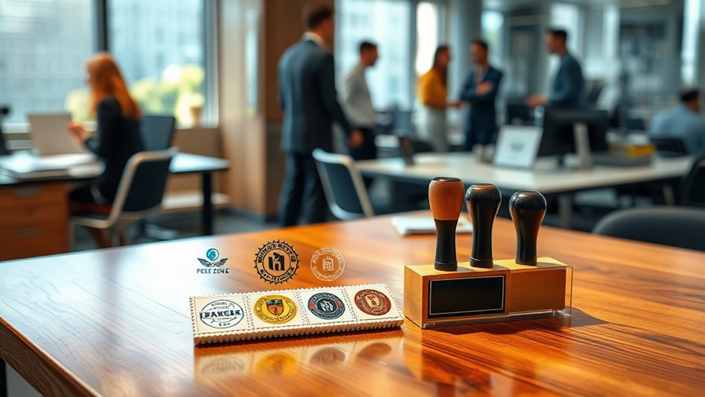 Custom stamps can greatly enhance your professional branding, allowing you to incorporate your logo and colors for consistent documentation. They also serve essential legal compliance functions, providing formal approval that reduces disputes in transactions. Additionally, unique security features inherent in customized designs help protect against document fraud, reinforcing the authenticity of your important papers. Moreover, using custom stamps can streamline the business setup process by ensuring all documentation meets the necessary regulatory standards.