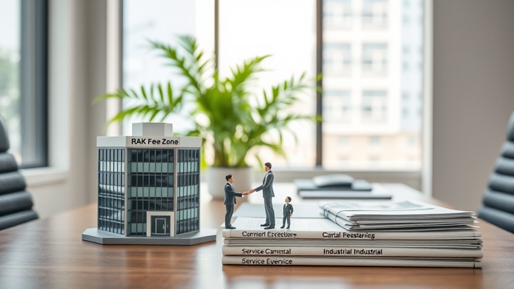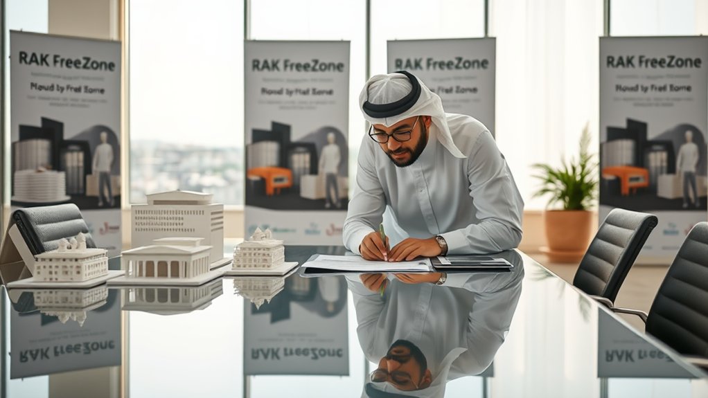 If you're considering setting up a business in the UAE, the RAK Free Zone offers a compelling option. This zone is known for its RAK advantages, including 100% foreign ownership and no personal income taxes. The Free Zone features a streamlined company registration process, making it easier for you to start your business without extensive paperwork. You can also benefit from various facility options, such as office spaces and warehouses tailored to your needs. Additionally, the RAK Free Zone provides easy access to international markets, thanks to its strategic location. Overall, this environment supports entrepreneurs looking for a flexible and business-friendly atmosphere to thrive while enjoying the benefits of a supportive regulatory framework. Furthermore, the RAK Free Zone is cost-effective for business operations, making it an attractive choice for startups and established companies alike.