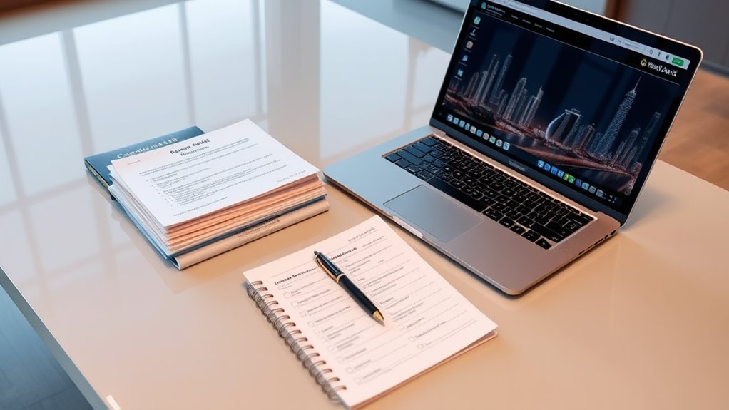 Once you've gathered all the necessary documentation, you're ready to start the application process for your corporate bank account in the UAE. Begin by selecting "APPLY NOW" on the online banking portal and filling out the required business and financial details. Next, prepare and submit essential documents, including your Company Trade License, Certificate of Registration, and passport copies of shareholders and authorized signatories. Don't forget to include a Board Resolution authorizing a company officer to open the account, ensuring all documents are notarized if necessary. During the verification process, verify your identity by responding to the OTP sent to your registered mobile. Finally, track your application status in real-time via the online platform until approval is granted and account documents are issued.
