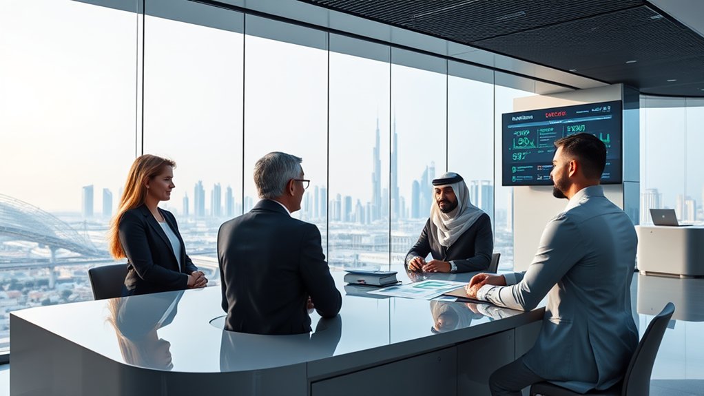 How can engaging with banking professionals transform your corporate banking experience in the UAE? By consulting with experts, you gain tailored advice that guarantees compliance throughout the account opening process. Business development specialists help you navigate minimum balance conditions and documentation requirements, streamlining your application. Scheduling consultations with bank managers provides personalized assistance, clarifying your specific needs.
