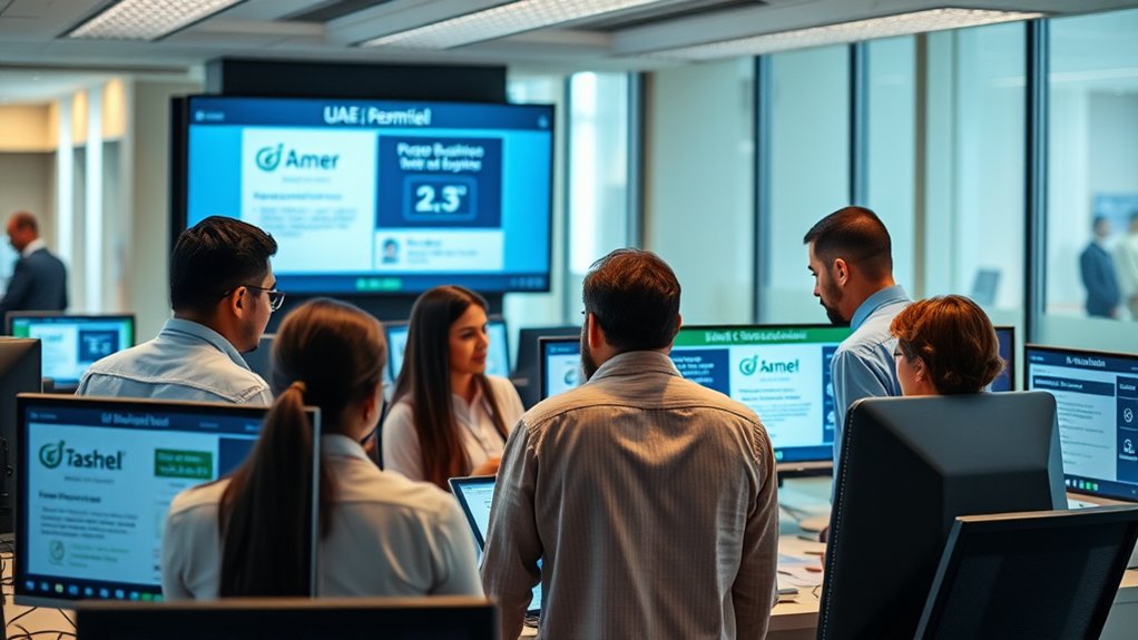 Maneuvering the intricate landscape of government procedures in the UAE can feel overwhelming, but with Amer and Tasheel, you're never alone. Both platforms provide you with access to expert guidance through dedicated professionals trained to assist you in traversing complex administrative tasks. They guarantee compliance with local regulations, offering multilingual support to bridge any language gaps you might encounter. At various service centers, you'll find knowledgeable staff ready to address inquiries related to visa processing, labor laws, and other essential matters. For immediate assistance, the AmerAssistbot is available online, delivering quick responses to common queries, thereby enhancing your experience. Continuous training for staff guarantees that you receive accurate and up-to-date information on any changes in procedures, ensuring your needs are met effectively.