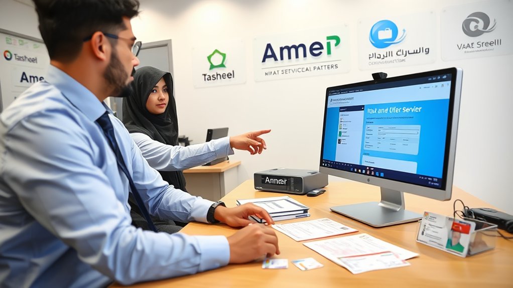 Maneuvering government procedures in the UAE is easier with accessible communication channels offered by Amer and Tasheel. These platforms guarantee you receive timely assistance and expert guidance through various means. Here's how they enhance accessibility: