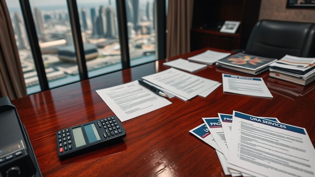 When you're considering company formation services in the UAE, it's crucial to account for licensing and registration fees, which can greatly impact your budget. These costs can range from AED 1,000 to AED 3,000 based on your specific business activities, adding to the initial setup expenses. Additionally, don't overlook office setup expenses, as leasing space could start from AED 2,000 per month, influencing your overall financial planning.
