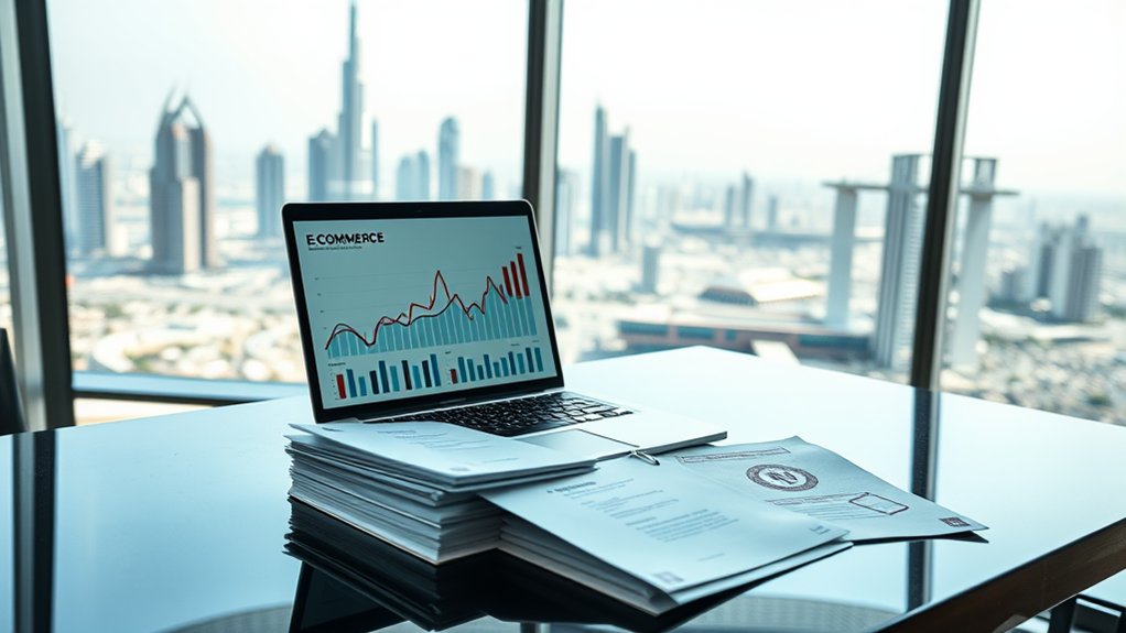 When you're ready to launch your e-commerce business on platforms like Amazon or Noon in the UAE, gathering the necessary documentation for your e-commerce license is vital. As a business owner, you must guarantee that all required documentation is accurate and complete to facilitate compliance with local regulations. Here's what you need: