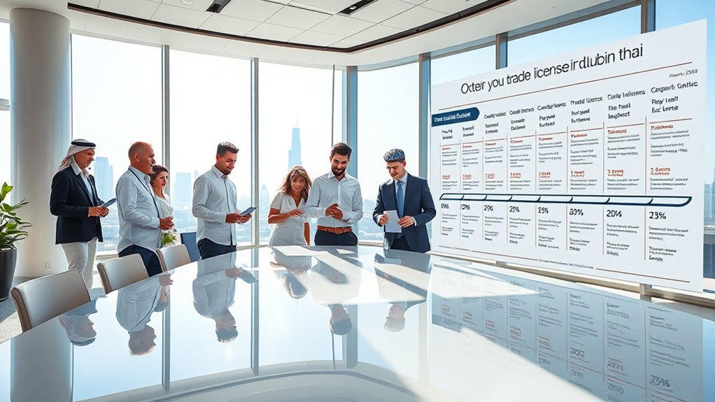When you plan to start a business in Dubai, understanding trade licenses is crucial. A trade license in Dubai is mandatory for legal operations and is issued by the Department of Economic Development (DED), ensuring compliance with local regulations. There are four main types of trade licenses: Commercial, Professional, Industrial, and Tourism, each tailored to specific business activities. The process begins with seeking initial approval, which typically takes 2 to 3 business days. Following this, document submission usually requires an additional 3 to 5 business days for final approval. A trade license is valid for one year, necessitating annual renewal to maintain compliance and avoid penalties, underscoring the importance of adhering to the established regulatory framework. Additionally, understanding the importance of trade licenses can help you navigate the complexities of starting a business in the UAE.