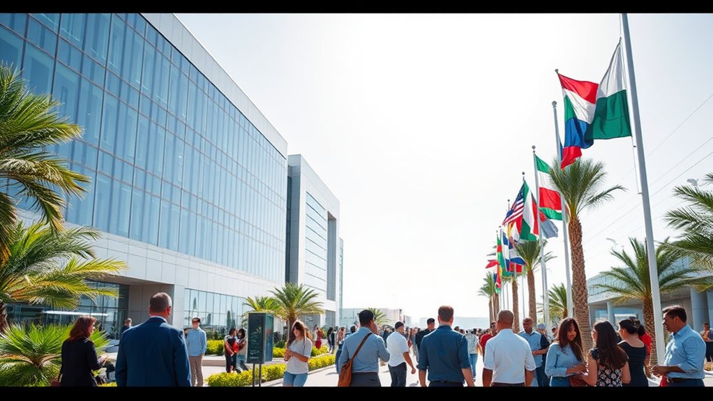 Building on the supportive business environment in the RAK Free Zone, networking opportunities abound for entrepreneurs looking to expand their connections. You'll find a range of collaborative events designed to foster relationships among business owners. These events allow you to meet like-minded individuals and share ideas. Additionally, various networking platforms provide easy access to potential partners and clients. By joining these platforms, you can stay informed about industry trends and regional developments. Engaging in these opportunities can lead to valuable partnerships and enhance your business visibility. Overall, the RAK Free Zone offers a vibrant networking landscape that can help you grow your business and achieve your goals. Don't miss out on these essential chances to connect.